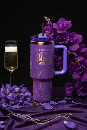 “Purple Reign” 40oz Insulated Tumbler – "It’s a Beautiful Day to be a Black Woman"
