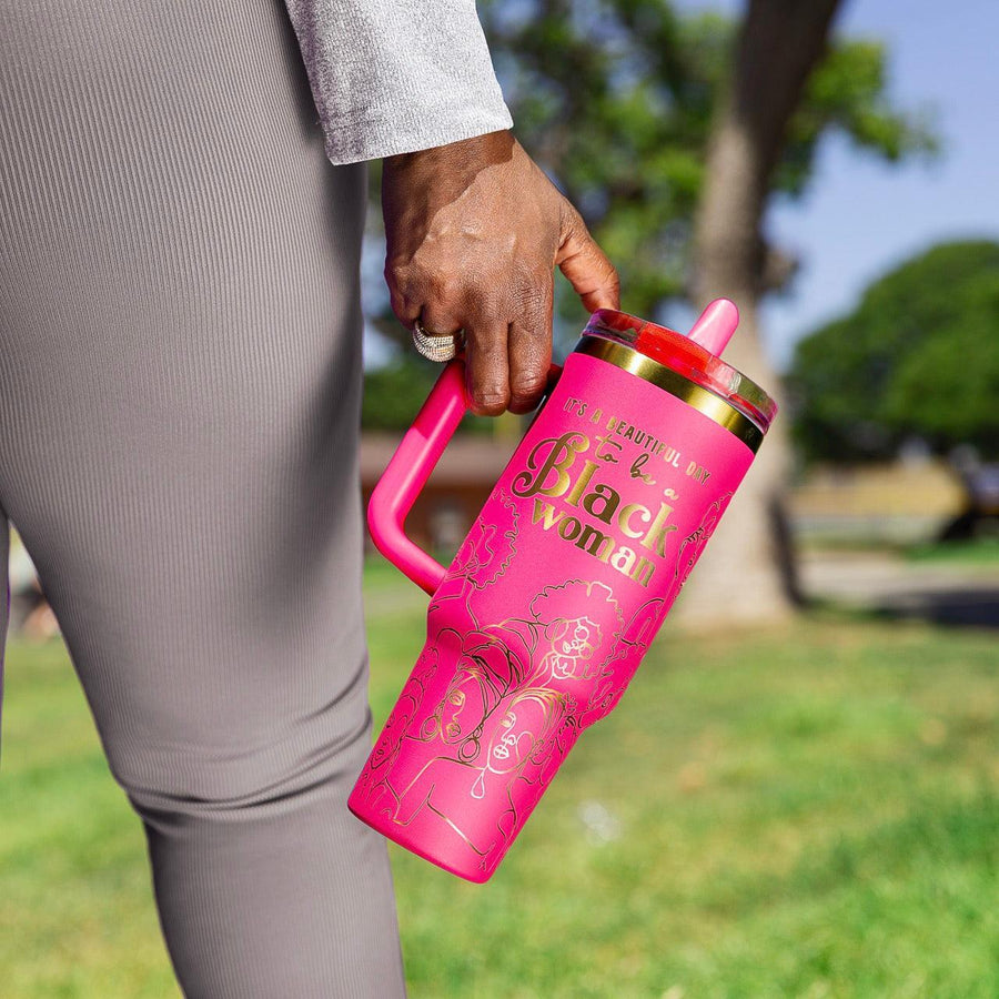 Pink “Royalty Blossomed” 40oz Insulated Tumbler – "It’s a Beautiful Day to be a Black Woman"