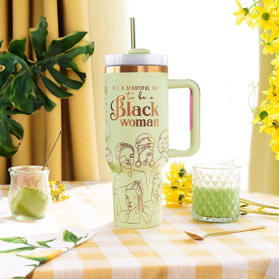 "Legacy Green" 40oz Insulated Tumbler – “It’s a Beautiful Day to Be a Black Woman”