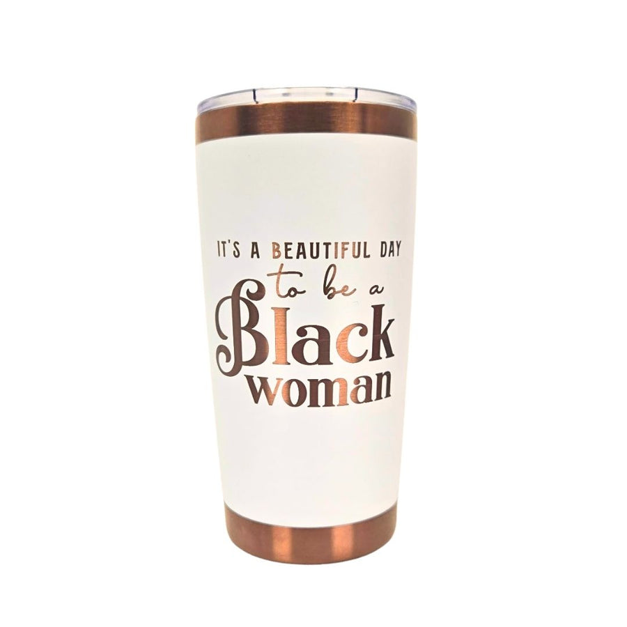 White 40oz Insulated Tumbler – “It’s a Beautiful Day to Be a Black Woman”