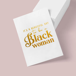 The "It's a Beautiful Day" Notecard is a unique way to connect, uplift, and celebrate the beauty that each Black woman brings to the world. Whether it's a birthday, a special occasion, or just a thoughtful gesture to brighten someone's day, this limited edition card is the ideal choice. Show your love and appreciation with a touch of class and style that goes beyond the ordinary.